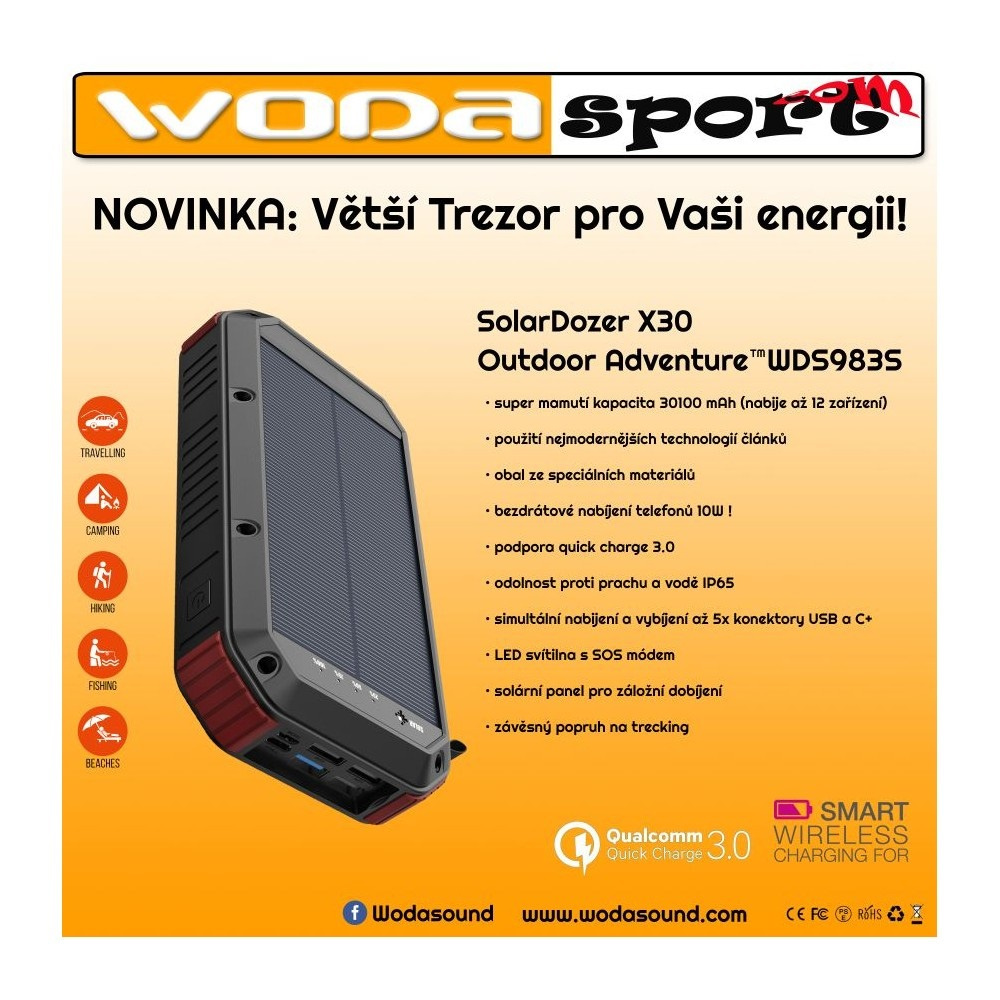 Popis Wodasport - X30 - Solárna powerbanka Wodasport® SolarDozer X30, Outdoor Adventure™ 30100 mAh 7v1