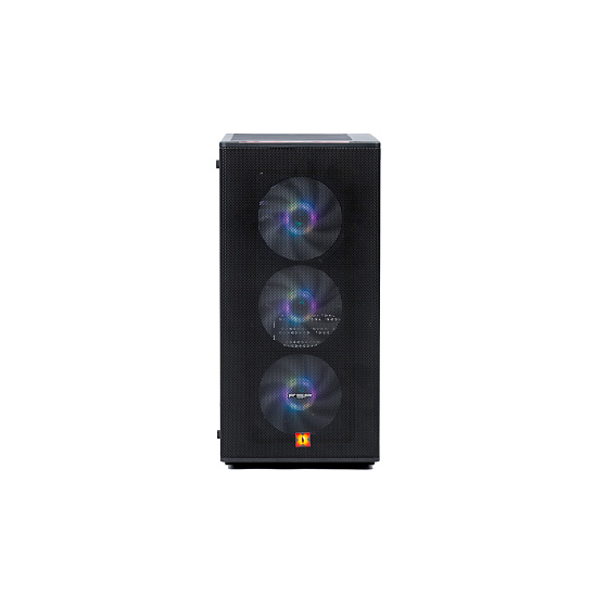 Počítač je osazen ve skříni s moderním síťovaným designem panelů, který zajišťuje velmi dobré proudění vzduchu a efektivní chlazení komponent. Skříň je vybavena 4× 120mm ARGB ventilátory.