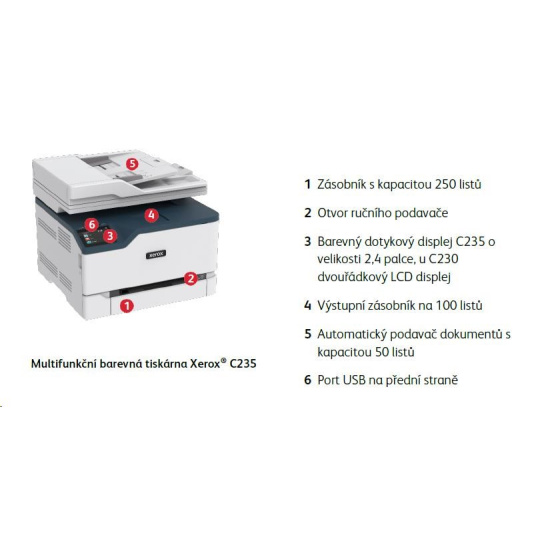 - Farebná multifunkčná tlačiareň Xerox® C235