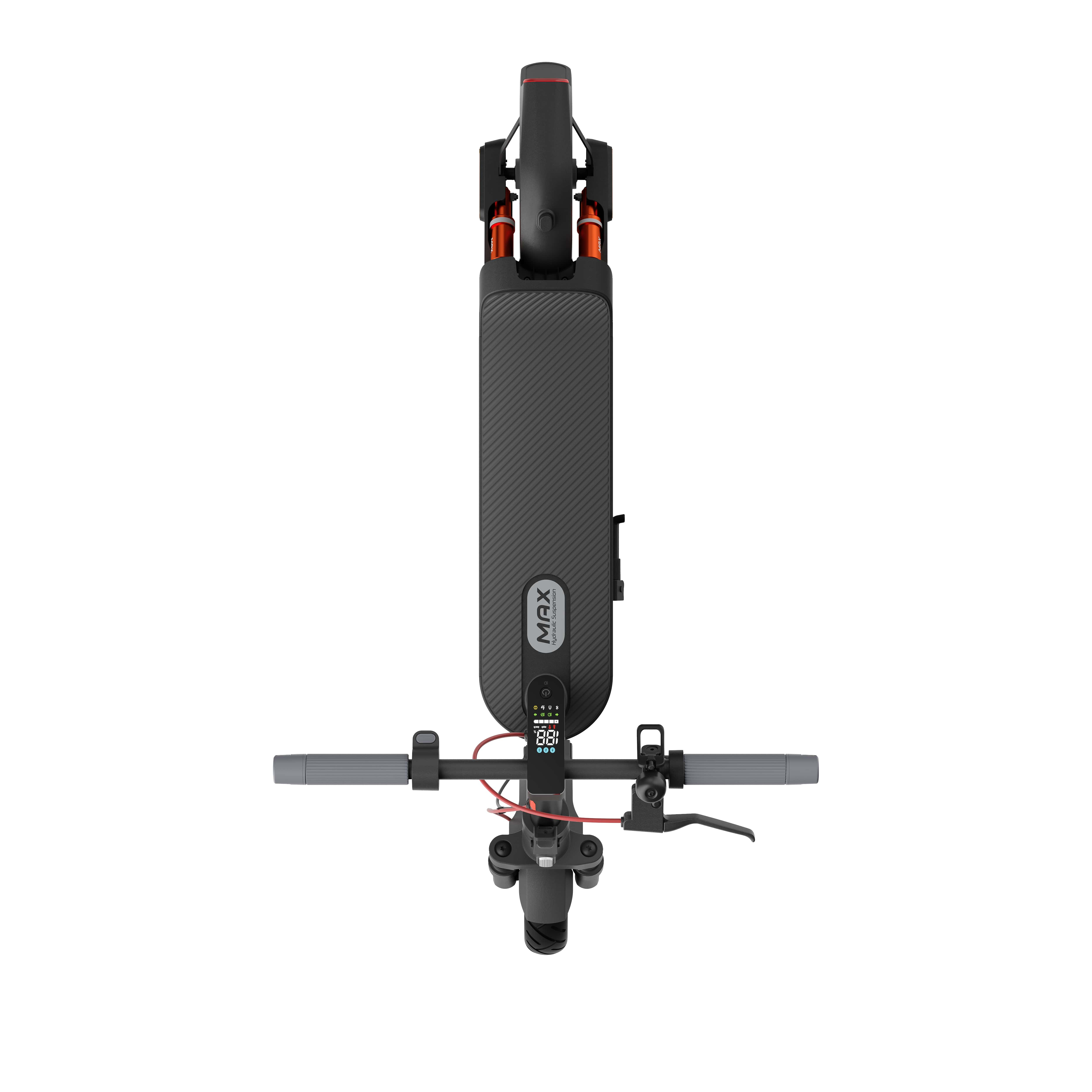 Díky přednímu dvojpružinovému hydraulickému tlumiči a zadnímu dvojpružinovému tlumiči je každá jízda plynulejší Elektrokoloběžka Xiaomi 5 Max využívá přední dvojpružinový hydraulický tlumič a zadní dvojpružinový tlumič k efektivnímu tlumení nárazu a zajištění pohodlné jízdy na dlažebních kostkách a dalších nerovných površích.