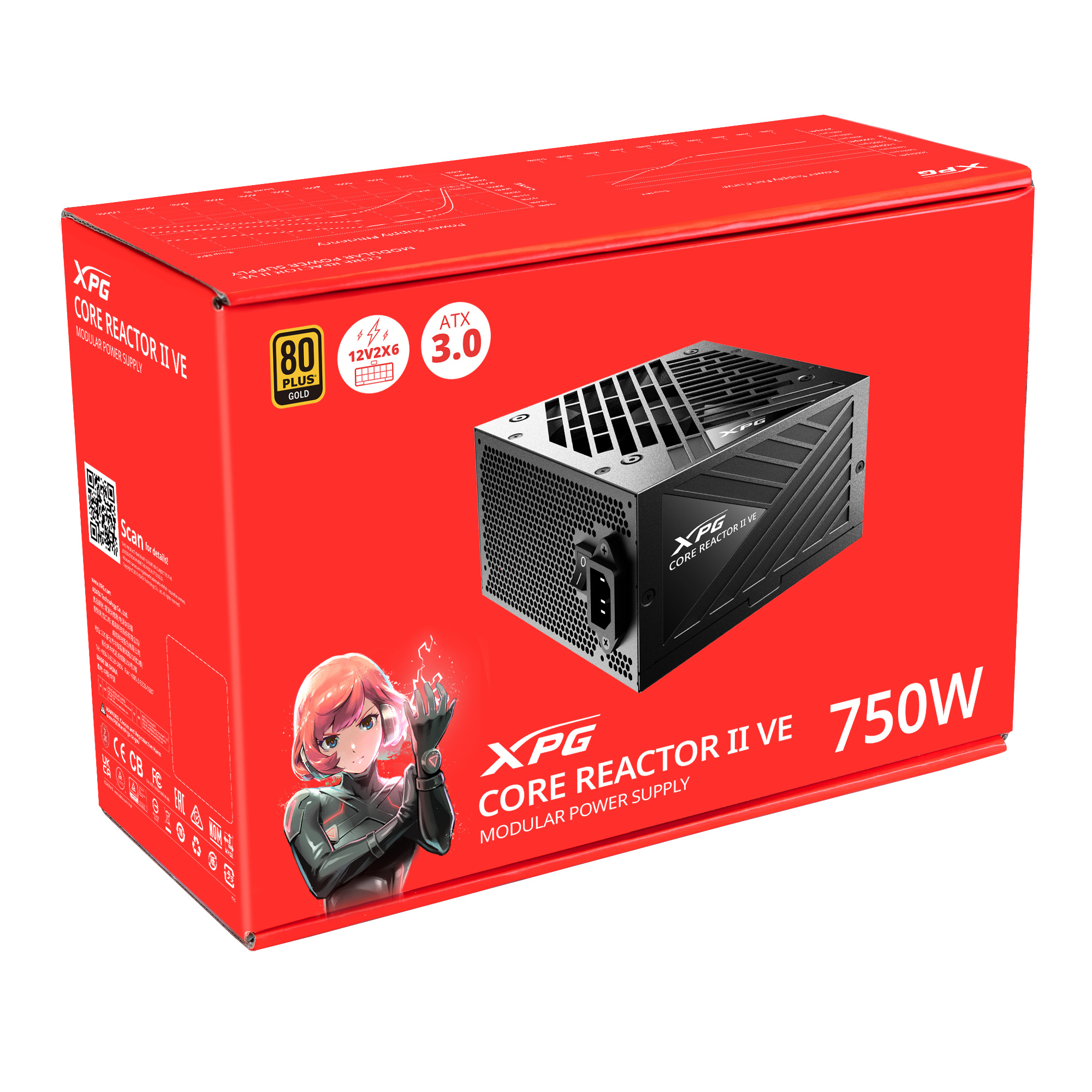 Popis Adata XPG Core Reactor II VE/750W/ATX/80PLUS Gold/Modular/Retail