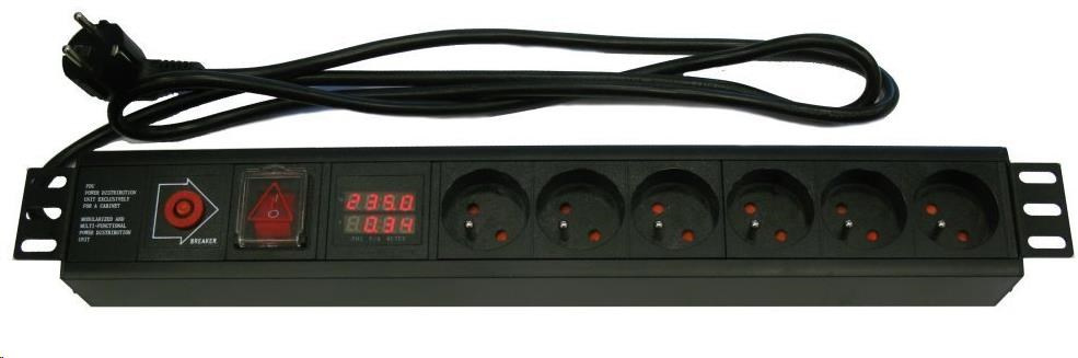 19'' rozvodný panel XtendLan 6x 230V, ČSN, vypínač, nadprúdová ochrana, meranie spotreby, kábel 1,8m, 1,5U