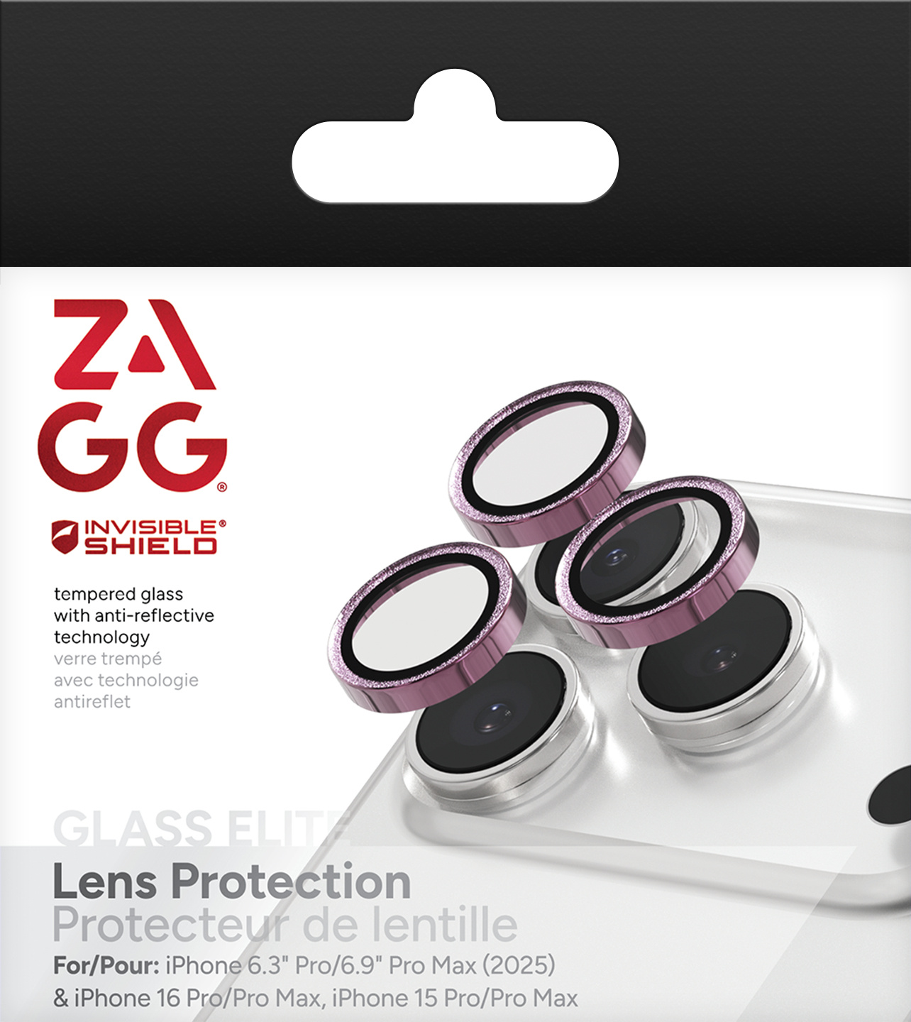 ZAGG Ochranná šošovka pre Apple iPhone 17 Pro/Pro Max/16 Pro/Pro Max/15 Pro/Pro Max - ružová trblietka
