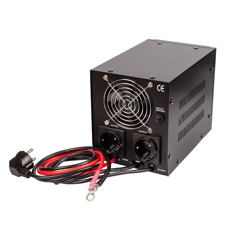 Při napájení ze sítě jsou napájeny připojené spotřebiče přímo ze sítě, externí akumulátor je dobíjen, při výpadku sítě zdroj automaticky přepne na měnič napětí, energie je odebírána z akumulátoru, spotřebiče jsou napájeny z měniče. Po obnovení el. energie zdroj automaticky přepne na síť, začne se akumulátor dobíjet.