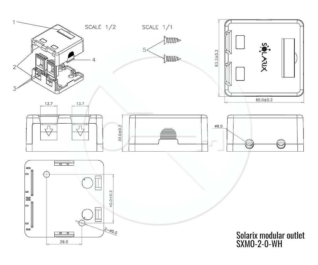 Zásuvka modulárna Solarix pre 2 keystony na omietku biela SXMO-2-0-WH