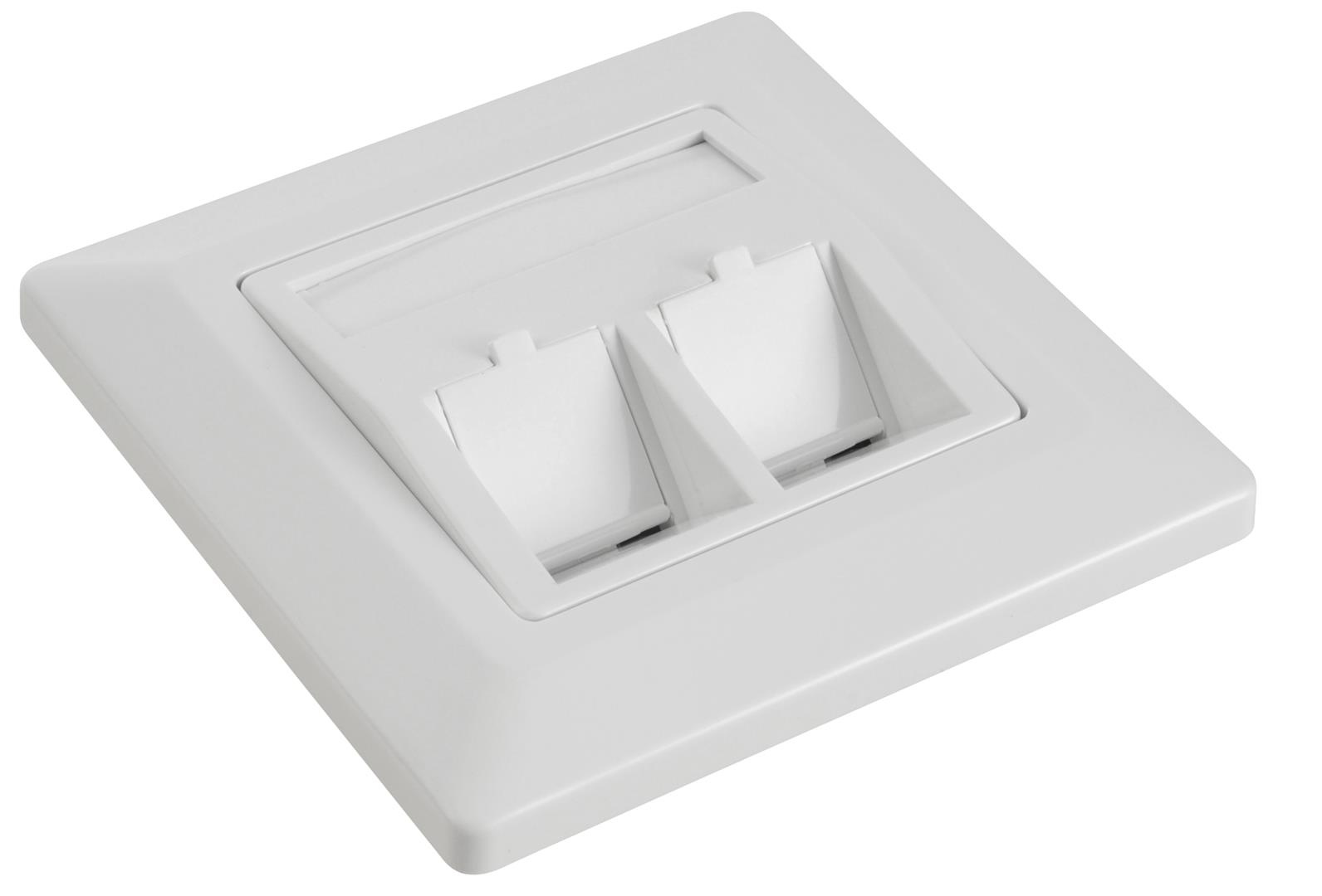 SPECIFIKACE • Počet portů: 2 • Stínění: ne • Určení: Pod omítku, s boxem na omítku • Úhel portů: 45° • Modulární provedení: ano • Barva: bílá • Rozměry: 80 x 80 mm • Skladovací teplota: -40 až 70°C • Provozní teplota: -10 až 60°C • Max. provozní vlhkost: 93%