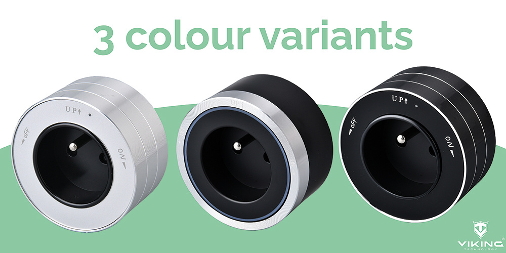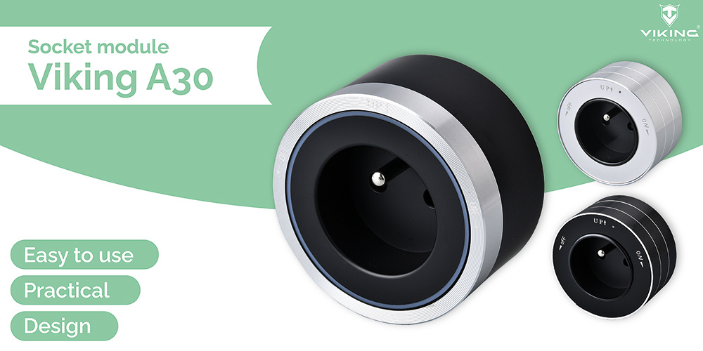Zásuvkový modul Viking A30 v černé a stříbrné variantě je vybaven LED indikátorem, který po připojení do elektrické sítě svítí modře. Stříbrno-černá varianta obsahuje kruhový LED indikátor, který signalizuje aktivní stav modulu.