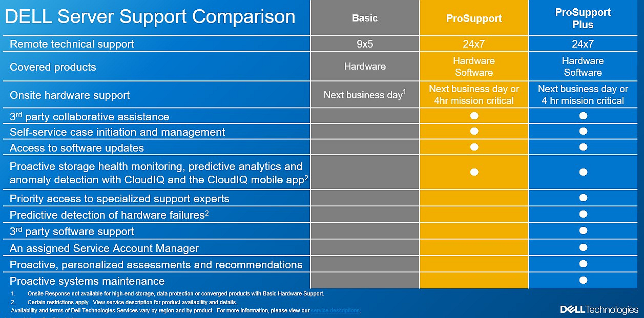 Srovnání DELL záruk uvedeno v přiložené tabulce. Dle potřeby naceníme libovolný typ a délku záruky k novým i již používaným serverům.
