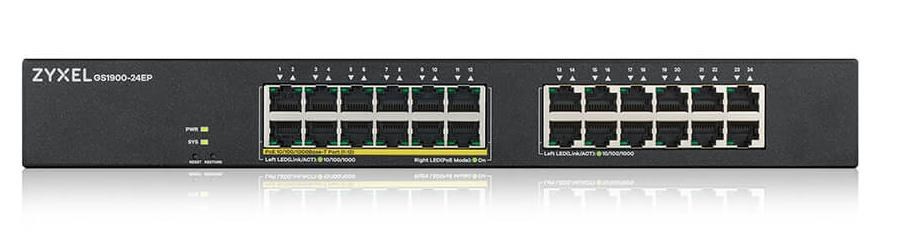 Zyxel GS1900-24EP 24-portový gigabitový inteligentný riadený PoE prepínač, 24x gigabitový RJ45 (12x PoE), rozpočet PoE 130W