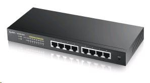 Zyxel GS1900-8HP v3 8-portový stolový gigabitový webový inteligentný PoE switch: 8x Gigabit metal, IPv6, PoE budget 70W, bez ventilátora