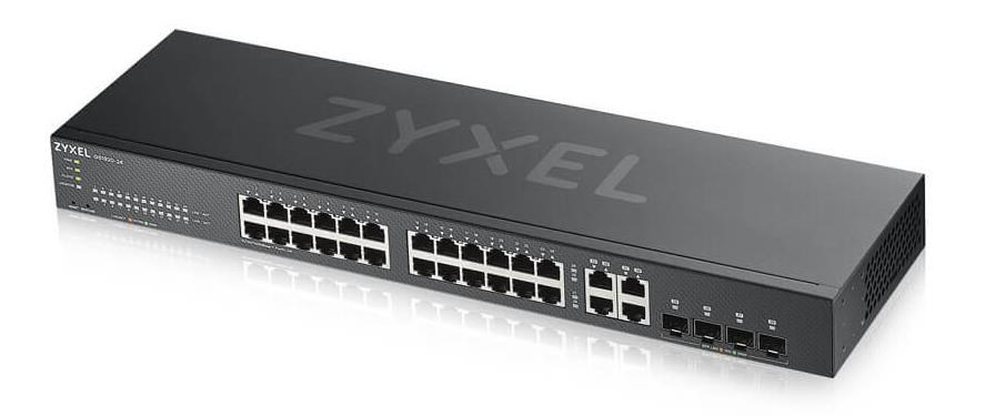 Zyxel GS1920-24V2 28-portový gigabitový WebManaged Switch, 24x gigabitový RJ45, 4x gigabitový RJ45/SFP, bez ventilátora