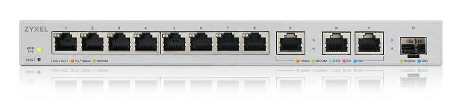 Zyxel XGS1250-12 12-portový gigabitový webový manažovateľný prepínač, 8x Gigabit RJ45, 3x MultiGig 1/2.5/5/10G, 1x SFP+